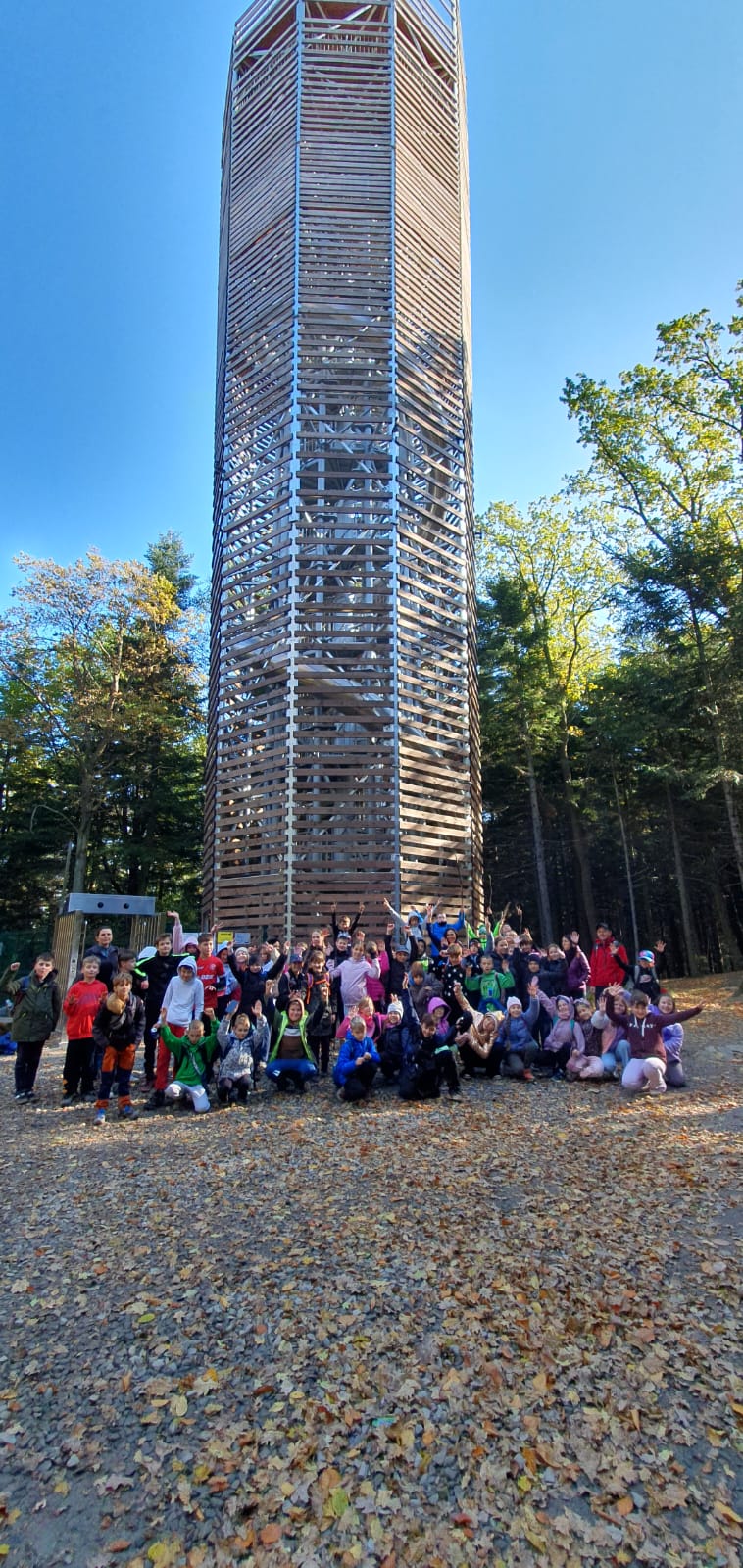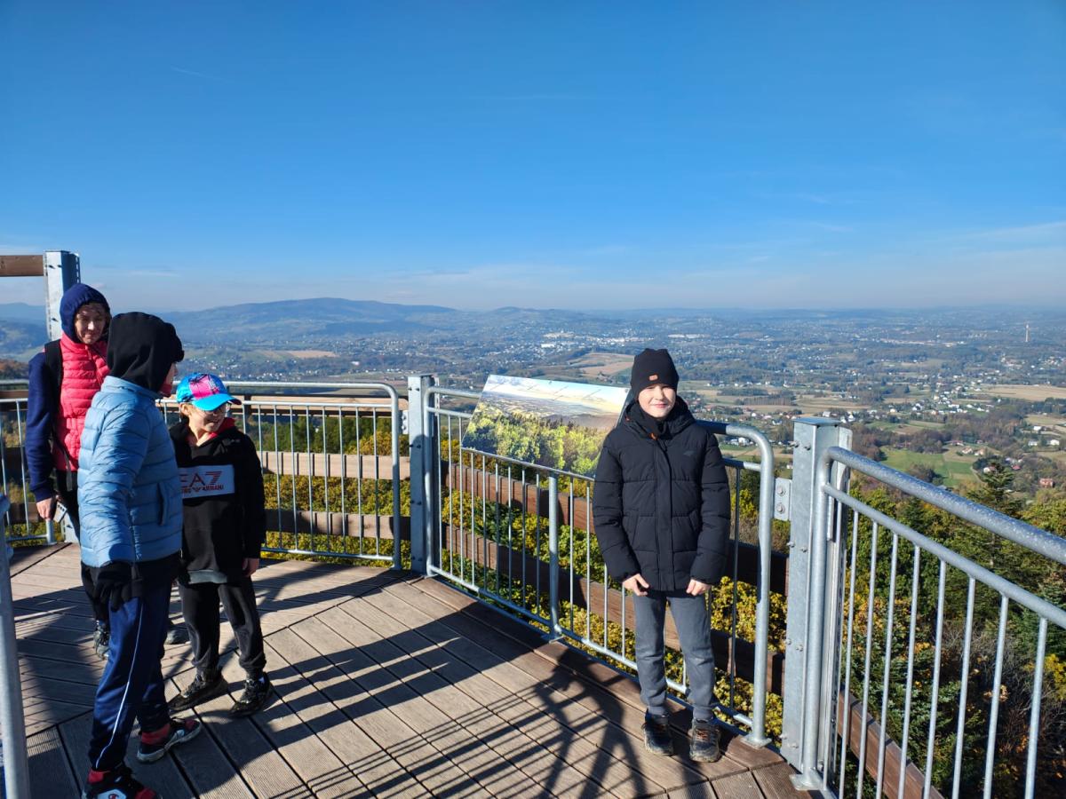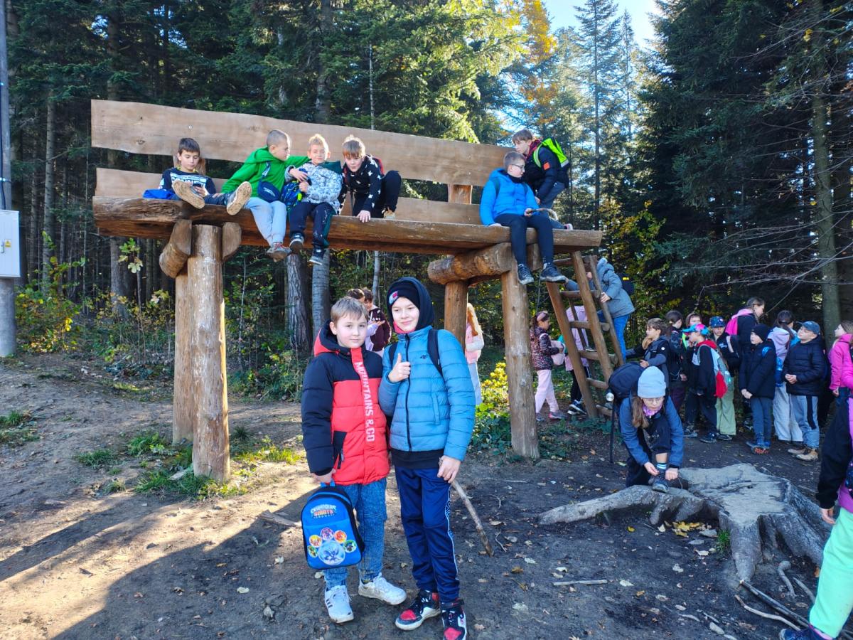 W dniu 23.10.2025r. uczniowie klas 4-6 wzięli udział w emocjonującym rajdzie Beskidu Niskiego na trasie Wapienne - Łysula, zakończonym w Skansenie Przemysłu Naftowego "Magdalena" w Gorlicach. Rajd był połączeniem sportowego wyzwania, podziwiania pięknej przyrody i historycznej lekcji w terenie. Wędrówkę rozpoczęliśmy w Wapiennem, skąd ruszyliśmy na zielony szlak. Głównym celem naszej pieszej przygody była Łysula (551 m n.p.m.). Wspinaczka została nagrodzona niesamowitymi widokami z platformy nowej wieży widokowej. Największą atrakcją, która wywołała najwięcej radości i pisku, okazała się długa, grawitacyjna zjeżdżalnia! To był zastrzyk adrenaliny dla każdego uczestnika! Po emocjonującym zjeździe i krótkim odpoczynku ruszyliśmy dalej w kierunku Dominikowic. Finałowym punktem rajdu był Skansen Przemysłu Naftowego „Magdalena” w Gorlicach. Po przejściu całej trasy nadszedł czas na zasłużony relaks. Na terenie skansenu czekały na nas przygotowane kiełbaski i ciepła herbata. Oprócz uczty, czas wypełniły wesołe zabawy i gry integracyjne, które pozwoliły zacieśnić koleżeńskie więzi i zakończyć dzień w świetnych humorach. Przy okazji zwiedzania skansenu uczniowie poznali też historię "czarnego złota" i początki polskiego przemysłu naftowego. Dziękujemy wszystkim Uczestnikom