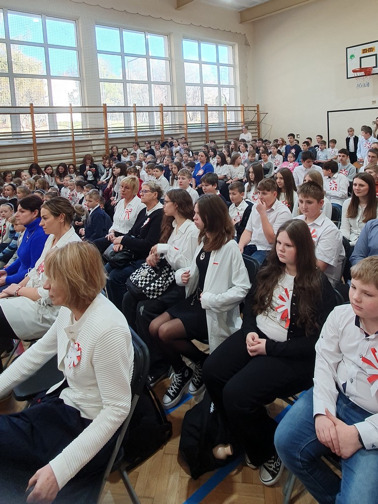 Dziękujemy klasie 7b, wychowawczyni – p. Renacie Tokarskiej, chórowi szkolnemu za oprawę muzyczną i p. Piotrowi Przyrowskiemu za dobór repertuaru. Dzięki ich pracy, zaangażowaniu i pasji mogliśmy wspólnie przeżyć wzruszającą lekcję historii i patriotyzmu.