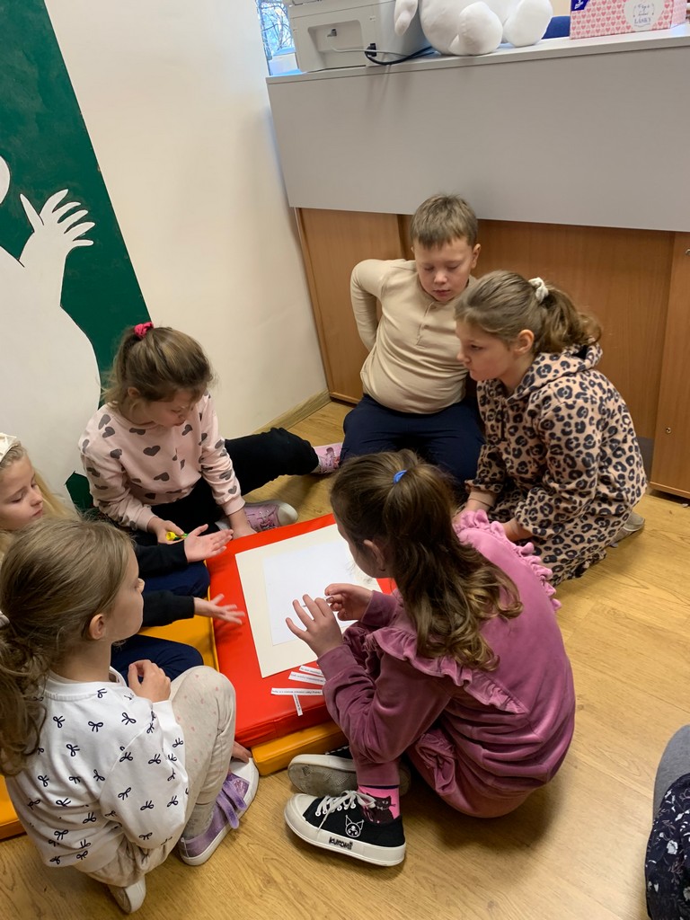 Na zakończenie uczniowie pracowali w grupach, tworząc wspólnie swoją pierwszą książkę o Lechu, Czechu i Rusie. Zajęcia były bardzo ciekawe, angażujące i pozwoliły dzieciom lepiej zrozumieć, jak powstaje książka.