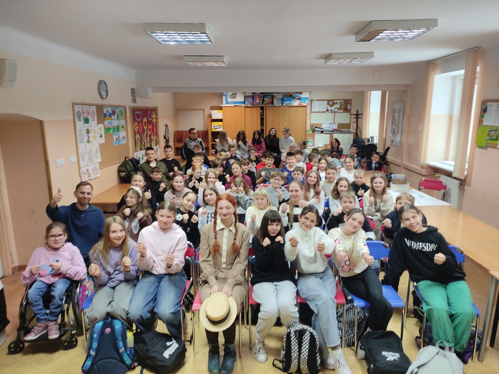 Na zakończenie wizyty Mai – Ani zrobiliśmy pamiątkowe zdjęcia, nie zabrakło także chętnych do zdobycia autografu młodej aktorki. Zarówno przedstawienie, jak i spotkanie okazało się dla jego uczestników niezwykle ciekawym wydarzeniem, miłą odmianą od nauki w tradycyjnej formie, ale także wyjątkową lekcją kultury, wrażliwości i otwartości na świat teatru, promującą słowo pisane i zachęcającą do lektury. Samo spotkanie z Mają, która po mistrzowsku wcieliła się w postać rudowłosej marzycielki, pozwoliło nam lepiej zrozumieć, ile wysiłku kryje się za każdym scenicznym gestem.